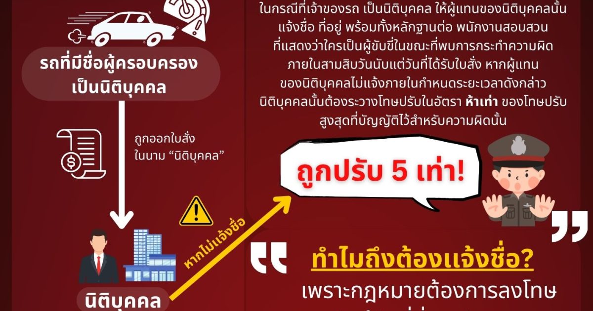 รถนิติบุคคลทำผิดกฎจราจร ต้องโดนปรับ 5 เท่า