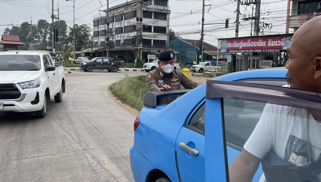 พ.ต.ท.สวิช ปรึกษา สวป.สภ.ระเบาะไผ่ ช่วยเข็นรถของประชาชน ชิดไหล่ทางเนื่องจากเครื่องยนต์ดับกลางแยกระเบาะไผ่ ถนน 304