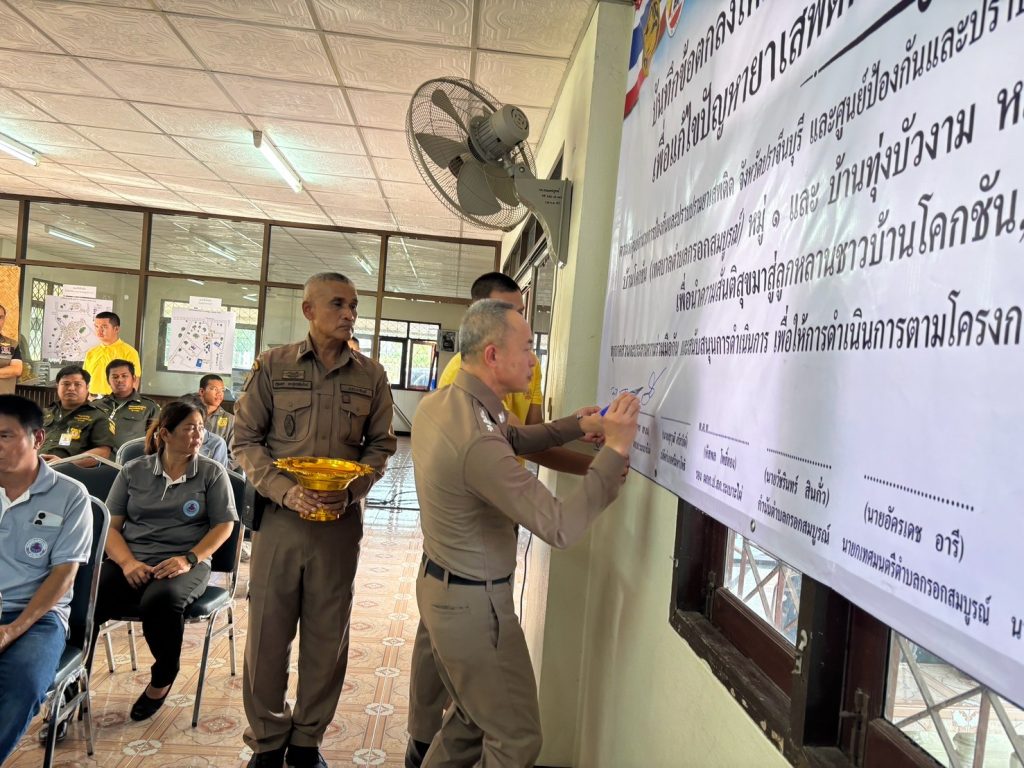 ✅ ได้มีการร่วมลงนามในบันทึกข้อตกลง (MOU) โดยหัวหน้าส่วนราชการและผู้นำชุมชนภาคีเครือข่ายในพื้นที่ และมีการลงนามในบันทึกข้อตกลง (MOU) สำหรับครัวเรือน และตรวจปัสสาวะผู้นำชุมชน/แกนนำหมู่บ้าน ชุมชน ที่เข้าร่วมในการเปิดโครงการฯ